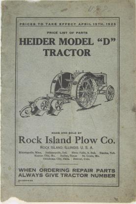 The Heider D remained in Rock Islands inventory from 1917 until ~1928 with few major changes. Although production may have stopped earlier, parts catalogues listed the D until 28 making the D the last to officially bear the Heider name. |