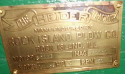 I have some question on the engine used in the Heider D. I have confirmation a Waukesha R was used on a Heider D (In fact, all Heider D tags I have so far seen have indicated a model R), and the Nebraska test indicates a 4 1/4 x 5 3/4 1000 RPM Waukesha but not a model. I also have indication a Waukesha N 4 1/2 x 5 3/4 was used in a Heider tractor prior to the Rock Island G. The rating on the N is somewhat suspect as I don’t have solid confirmation off an engine or anything. A Waukesha C.U. has also been indicated as being used in a 9-16 Heider, but again I have no confirmation of this, although I have found indication of a D.U. used on a Heider C chassis.