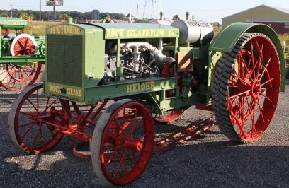 With the demand for smaller tractors for smaller farms increasing in the late teens, Rock Island released a smaller version of its popular Heider C. The Heider D featured a 4 1/4 x 5 3/4 Waukesha but was otherwise a scaled down C without canopy or side curtains, although few parts are interchangable. The loss of the curtains may have been practical as well as a cost cutting measure as many farmers removed the side curtains on the C to improve airflow over a hot running engine anyway.