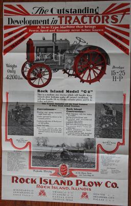 The Rock Island G2 15-25 is by far the most common of the Rock Island tractors found today, but apparently was produced in far more limited numbers then the 18-35 F. Produced from 1929 until 1932 these were popular tractors and were significant in the Rock Island Line, second only to the F. According to Jon Clingan, Waukesha produced only a little over 1000 CS4 engines of all variants, likely making production about a third of the F/FA line. Despite their popularity, the G2’s never figured prominently in Rock Islands advertising, with most ads featuring an F with only a mention of the G2, or in some cases a G was featured with text for a G2.